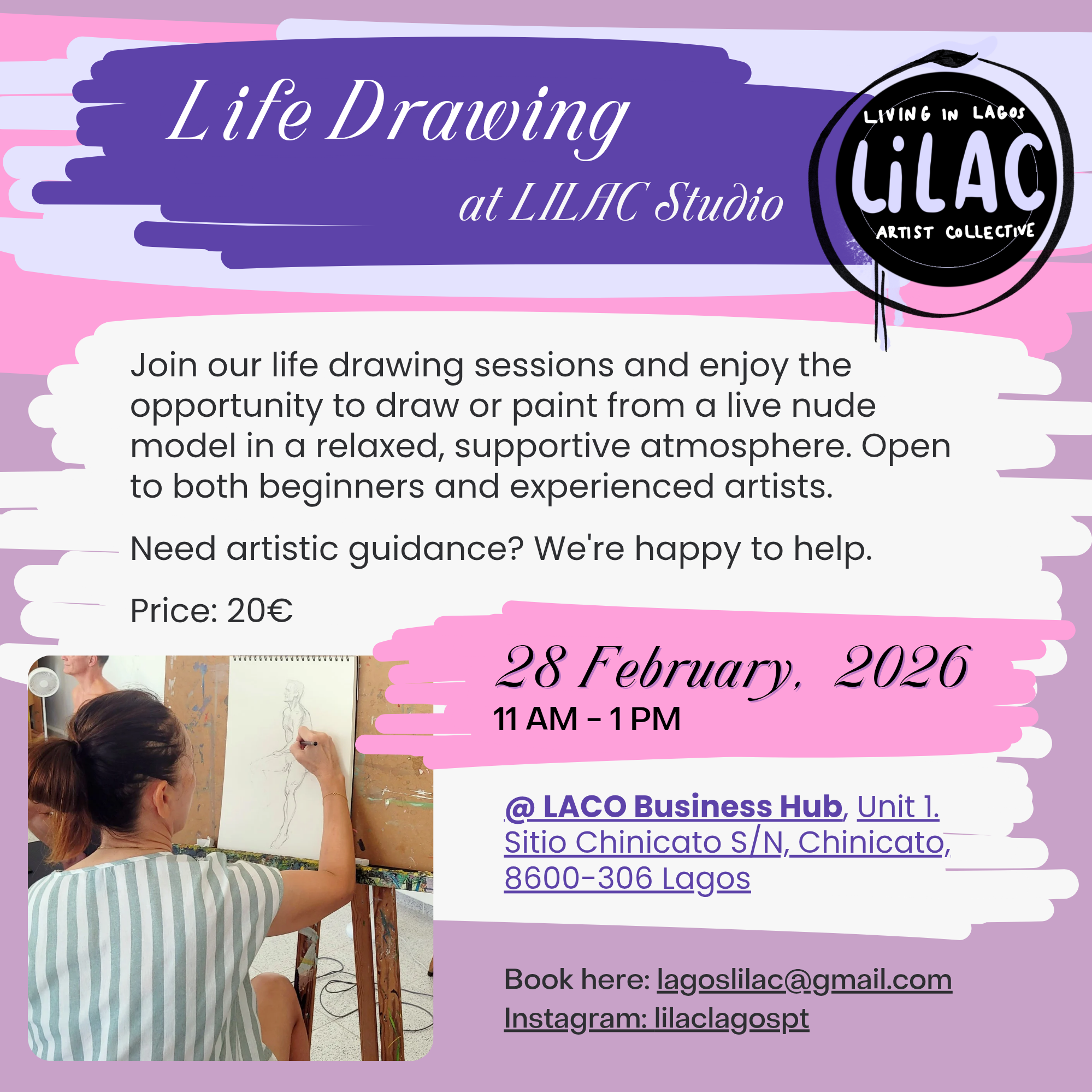 Join our life drawing sessions, where you’ll have the opportunity to draw from a live model in a relaxed and supportive environment. Suitable for both beginners and experienced artists. If you need artistic advice, we’re here for you.