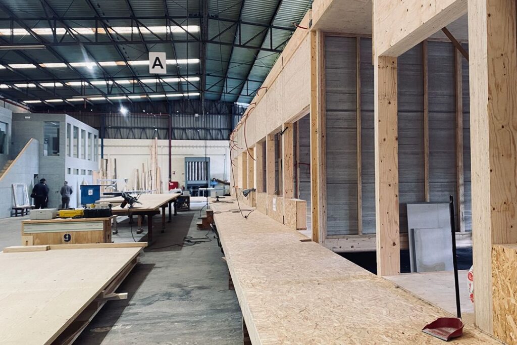Measuring Up: Carpenters work on the modular houses at the Jular factory in Azambuja, Portugal