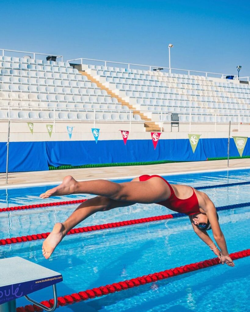 For Lily, the ocean is more than just a place to train; it is a sanctuary and a teacher. When asked about her love for the sea in the Algarve, she emphasises the sensory details: “What I love most about the ocean here is how alive it feels – the colours, the sounds, and how the light changes every hour. It’s different every single day,” she notes. “I feel happiest when I’m swimming in the Atlantic. It’s my place to think, to train, and to reset. The ocean teaches me respect and calm – and it always reminds me how small we really are compared to nature.”